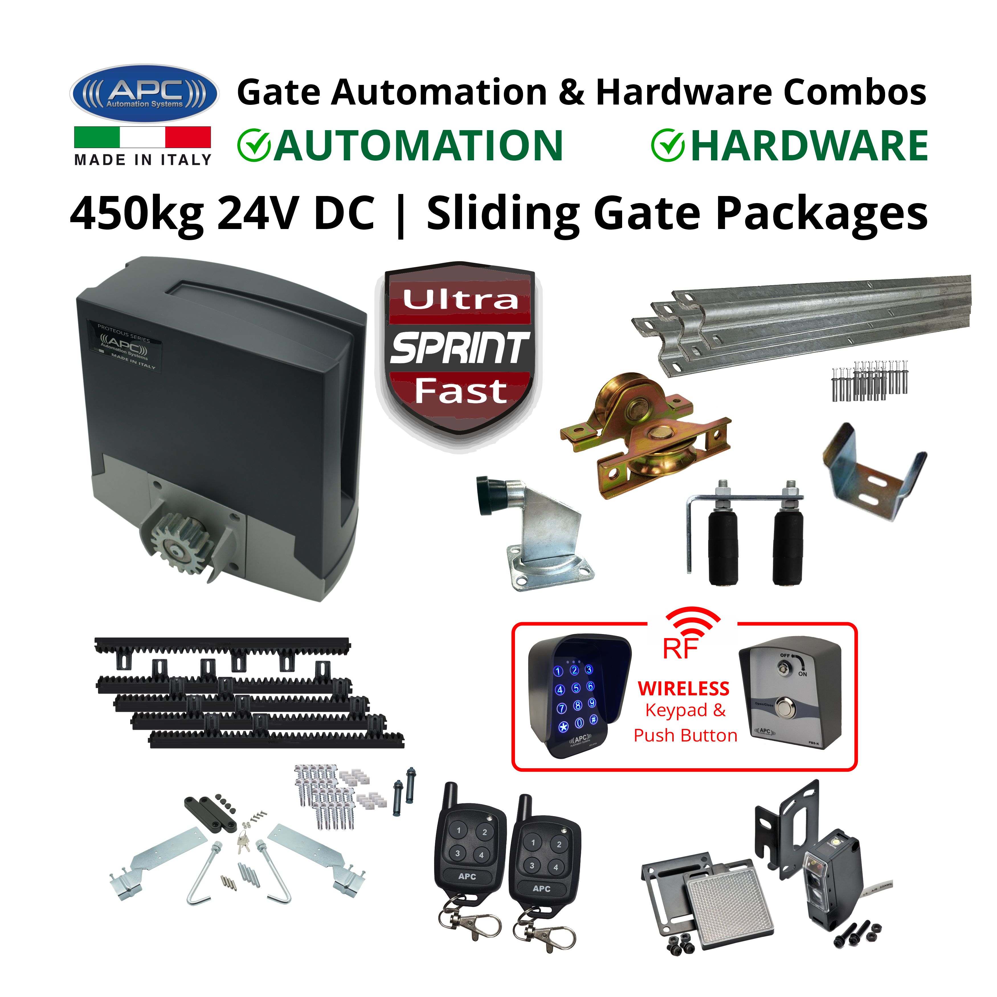 Supports Bi-Parting Sliding Gates using only one set of accessories using the APC SYNCRO module system