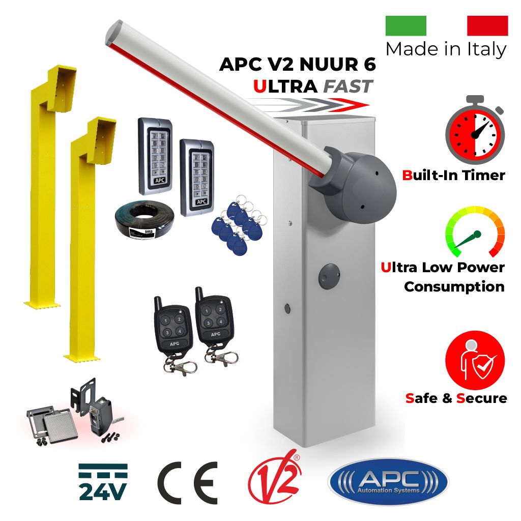 Boom Barrier / Boom Gate / Parking Barrier, Car Parking Access Control APC V2 NUUR 6, Universal Boom Gate Ultra High-Speed 24V DC, 6 Meter Barrier Made in Italy